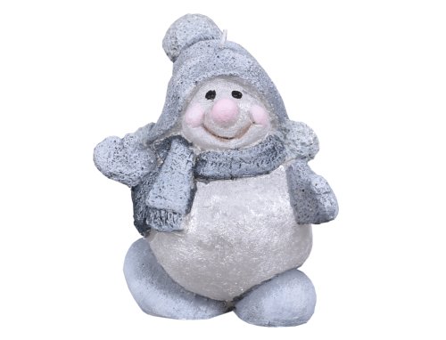 Vánoční figurální svíčka v podobě sněhuláka. Barva: šedá. Výška: 11 cm.