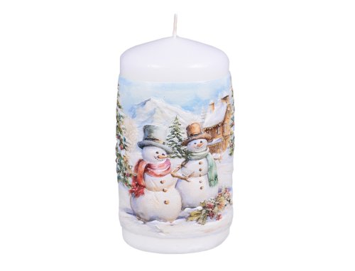 Svíčka SNĚHULÁK VÁLEC zdobená vyřezávaná vonná d6x10cm