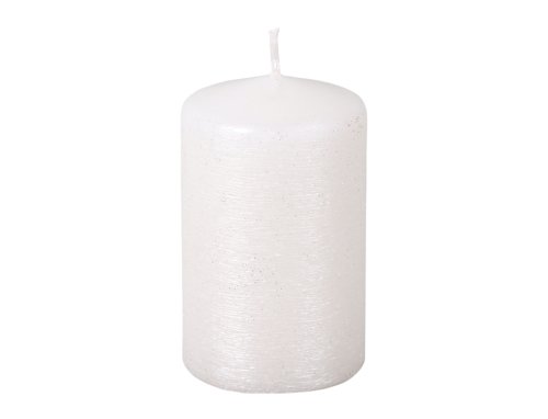 Škrábaná adventní svíčka s metalickým lesklým povrchem. Hlava je rovná, zaoblená. Dekorativní vzhled ozvláštní každý vánoční svícen či dekoraci. Průměr: 7 cm, výška: 12 cm. Doba hoření: 80 hodin. Barva: bílá.