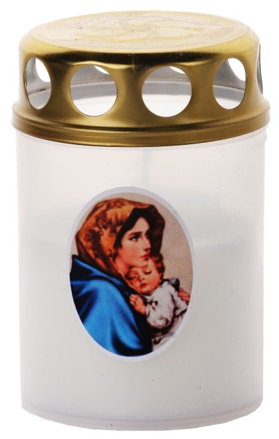 Svíčka Vatikánka určena na hřbitovy v plastovém průhledném obalu s nálepkou s různými náboženskými motivy. Její součástí je plechové víčko, které slouží jako ochrana před povětrnostními vlivy. Doba hoření až 30 hodin. Doba hoření závisí na klimatických podmínkách. Určeno pro venkovní použití.