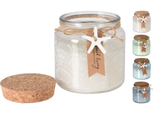 Vonná svíčka ve skle o rozměru 100×100 mm, doplněná korkovým víčkem a zdobená motivy inspirovanými létem. Svíčky jsou dodávány v mixu barev i vůní, jednotlivé kusy se mohou lišit designem i aroma.