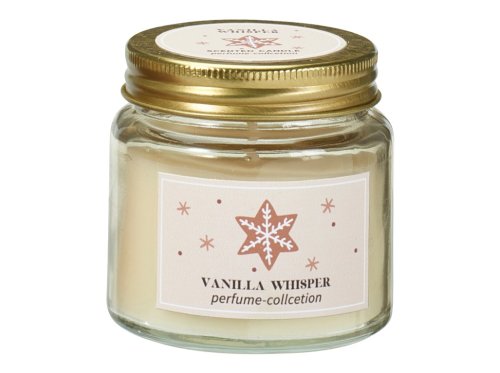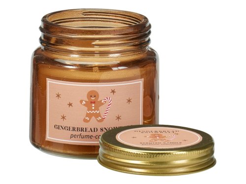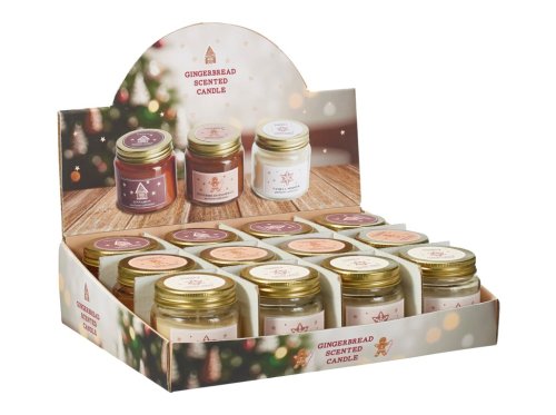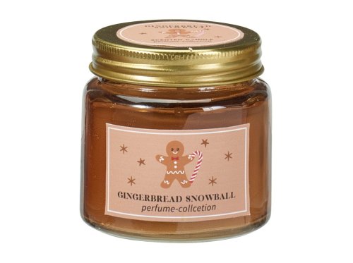 Vonná svíčka ve skle o rozměru 62×63 mm s plechovým víčkem zdobená motivem perníčků. Svíčka je dodávána v různých barevných provedeních a vůních, které zpříjemní vánoční atmosféru.