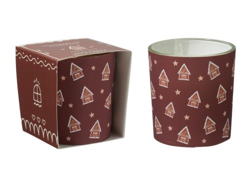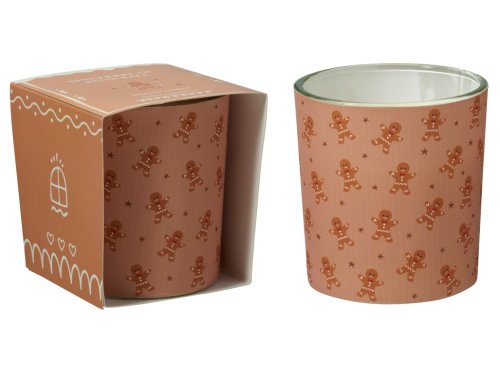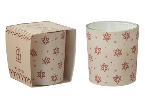 Vonná svíčka ve skle o rozměru 70×75 mm zdobená motivem perníčků, dodávaná v dárkové krabičce. Barevné provedení svíčky podtrhuje vánoční atmosféru a dodává interiéru veselý a slavnostní vzhled.