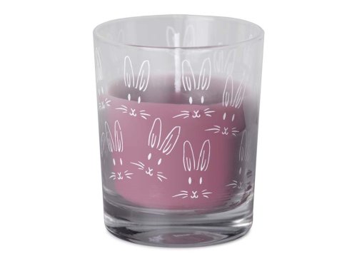 Svíčka ve skle 70x86 mm potisk zajíčci, fialová