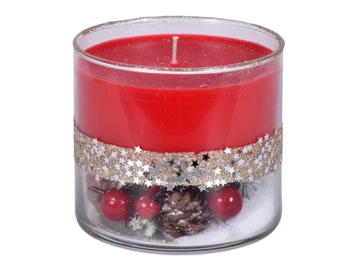 Vonná svíčka ve skle DUO CHRISTMAS TIME je dekorativní svíčka v čiré skleněné nádobě, kde horní část tvoří vosková náplň s knotem a spodní část je vyplněna vánočními ozdobnými prvky, které podtrhují slavnostní charakter. Díky kvalitnímu složení vosku a stabilnímu knotu hoří rovnoměrně a bez nadměrného kouře. Svíčka je vhodná jako stylový doplněk interiéru i jako vánoční dárek. Vůně vytváří příjemnou sváteční atmosféru. Hmotnost náplně: 270 g. Doba hoření: 33 hodin. Rozměry: průměr 8 cm, výška 10 cm. Barva: červená.