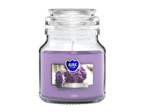 Fialová svíčka ve skleněné nádobce se skleněným víčkem. Vůně: levandule. Doba hoření: 28 hodin. Šířka: 7 cm, výška: 10 cm. Hmotnost náplně: 120 g.