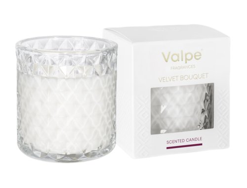 Vonná svíčka ve skle. Velmi dekorativní sklenice a stylová krabička dělá z tohoto produktu hezký dárek. Svíčka má květinovou vůni. Má certifikát kvality RAL, který garantuje bezpečnost a kvalitu použitých materiálů. Doba hoření: 40 h. Rozměry: průměr 8 cm, výška 9 cm. Hmotnost: 180 g. Barva: bílá.
