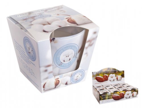 Vonná svíčka ve skle s potiskem. Vůně: bavlna. Hmotnost: 115 g.