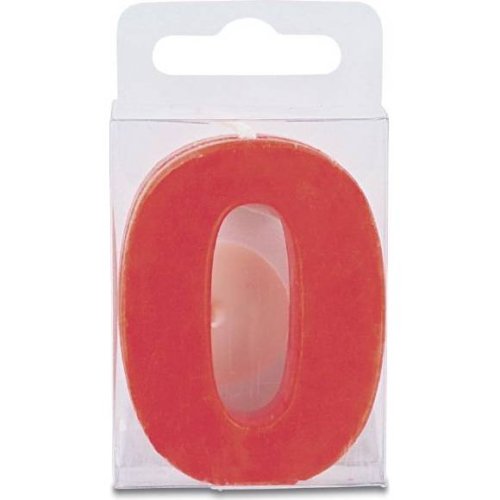 Svíčka ve tvaru číslice 0, výška 4 cm, červená barva. Je vhodná především na narozeninový dort a zdobení podobných moučníků.
