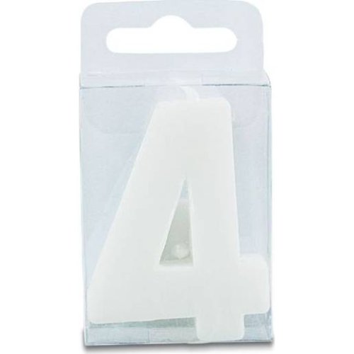 Svíčka ve tvaru číslice 4, výška 4 cm, bílá. Je vhodná především na narozeninový dort a zdobení podobných moučníků.