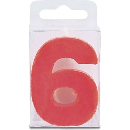 Svíčka ve tvaru číslice 6, výška 4 cm, červená barva. Je vhodná především na narozeninový dort a zdobení podobných moučníků.