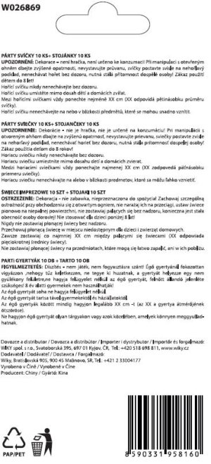 Svíčky 10ks + stojánky 10ks stříbrná barva.