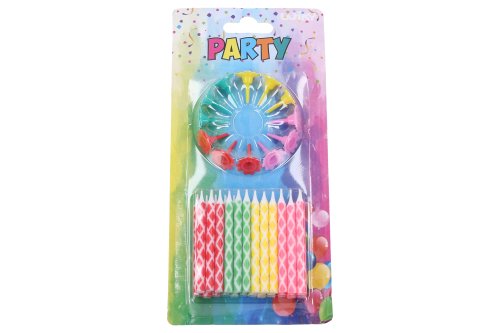 Barevné party svíčky - balení 24 svíček + 12 stojánků