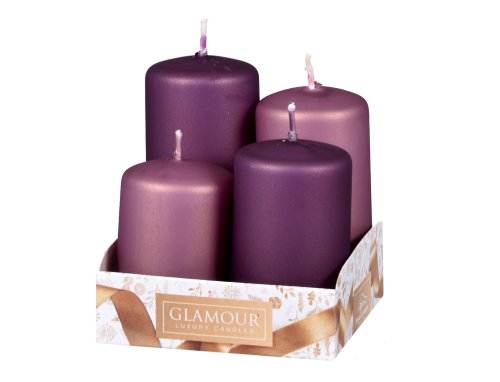 Adventní stupňovité svíčky, matně metalické, s plochou hlavou. V neotřelých barvách. Rozměry: průměr 4 cm, výška: 6/7/8/9 cm. Doba hoření: 11/12,5/14,5/16,5 h. Materiál: parafín. Balení obsahuje 4 ks svíček. Barva: fialová, fialovo-zlatá.