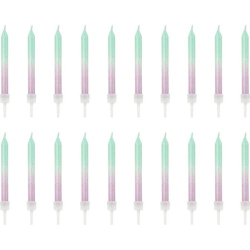 Svíčky na dort v barvách Ombre. V balení 20 ks, délka 6 cm.