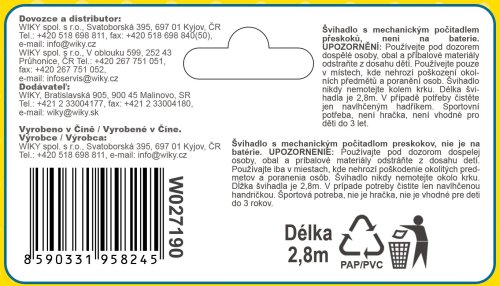 Švihadlo s plastovým lanem a počítadlem. Délka 280 cm. Mechanické počítadlo.