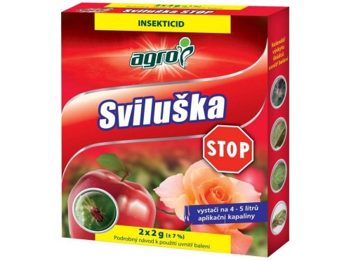 Agro Sviluška Stop je dlouhodobě působící kontaktní přípravek s hloubkovým účinkem proti sviluškám. Přípravek účinně působí na vajíčka, larvy a nymfy a dospělce sterilizuje.
