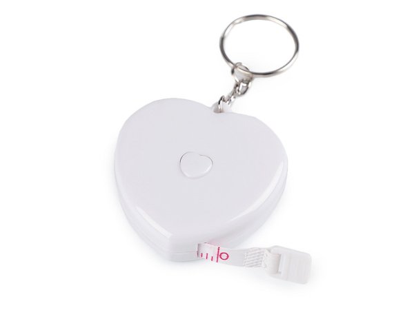Svinovací metr ve formě přívěsku na klíče budete mít vždy po ruce. Má tvar srdíčka. Metr je oboustranný - na jedné straně jsou jednotky uváděny v "cm" a na druhé straně jsou jednotky uváděny v "palcích". Dá se rozvinout na délku 150 cm.