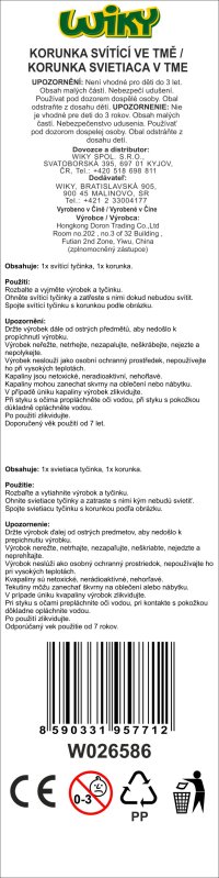 Svítící hůlka s korunkou. Obsahuje: svítící tyčinku, korunku. 6 různých barev.