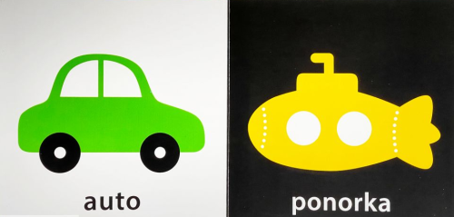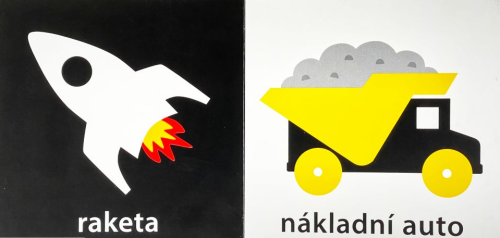 Toto malé leporelo můžete vzít všude s sebou. Velké je tak akorát do dětských ručiček a díky pevným stránkám vydrží i méně šetrné zacházení. Jednoduché obrázky různých vozidel, jako je vlak, ponorka, nákladní auto nebo formule, jsou uzpůsobené malému děťátku, a tak si je vaše miminko může prohlížet stále dokola. Černobílá varianta doplněná o kontrastní prvky je pro správný vývoj zraku malého miminka vhodnější než pestrobarevné obrázky. Zároveň se může učit rozlišovat jednotlivé barvy. Ukažte svému děťátku, jak má otáčet pevné stránky, a rozvíjejte tak u něj jemnou motoriku a koordinaci pohybu prstíků.