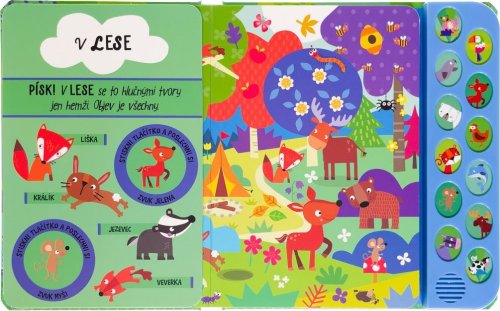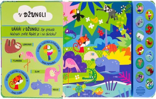 Dívej se, poslouchej a užij si 12 zábavných zvuků! Pozorně se podívej na obrázek a najdi v něm 6 zvířat. Ať už v džungli, na farmě nebo pod vodou… všude je rušno! V této rozkládací knížce si můžeš poslechnout parádní zvuky, které různá zvířata vydávají. Kniha obsahuje 3x 1,5V AG10,LR1130 baterie.
