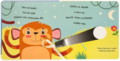 Pomoz opičce s kouzelnou baterkou objevit její zvířecí kamarády, schované v knížce! Veršované čtení, ideální na uspávání do postýlky.