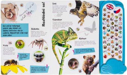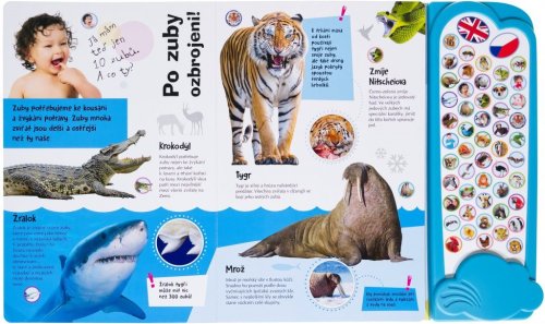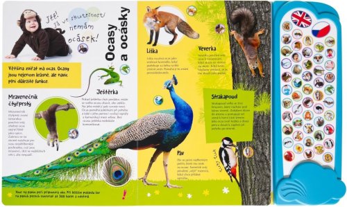 Vítej v úžasném světě zvířat! Otevři si tuto interaktivní encyklopedii s 50 zvuky skutečných zvířat a poslechni si věty a názvy zvířat ve dvou jazycích - češtině a angličtině. Víš, jak hodně se liší lidé od zvířat? Poznáš, které zvíře má osm nohou? A co zvíře s dlouhým, ale něžným chobotem? Přenes se mezi zvířata a naslouchej jejich zvukům. Speciální ikona na stránce ti naznačí, která zvířata si můžeš poslechnout. Stačí si jen vybrat jazyk a zažít plno zábavy a poznání. S touto zvukovou knihou si děti procvičí kognitivní dovednosti, paměť a především slovní zásobu v obou jazycích. Počet stran: 14 Vazba: Leporelo zvukové Rok vydání: 2023 ISBN: 978-80-256-3490-5