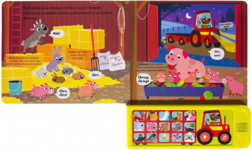 Zvukový model nabízí přehrávání zvuků zvířat, veselých melodií po stisknutí noty i naučnou hru na hledání zvířat po stisknutí tlačítka na levé pneumatice traktoru.