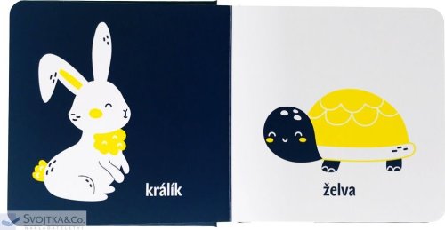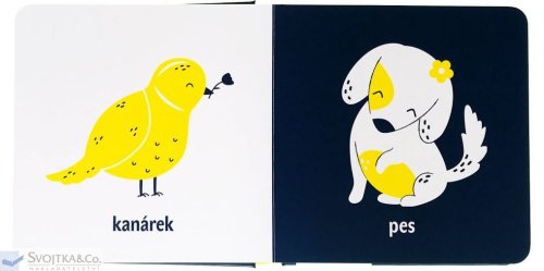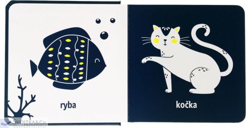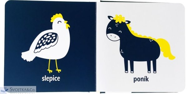 Na stránkách tohoto malého leporela se miminko setká s kočkou, králíkem, psem, prasetem a dalšími domácími zvířaty. Batole lépe rozlišuje kontrasty, proto má tato obrázková knížka jednoduchou černobílou grafiku, která je oživena jednou výraznější barvou. Uvnitř knížečky najdete jednoduché dvoubarevné obrázky zvířat, uzpůsobené citlivému dětskému zraku. Děťátko se s tímto leporelem bude učit poznávat domácí zvířata. Leporelo je vyrobeno z pevného materiálu, má oblé hrany a velké je tak akorát do dětských ručiček. Je to ideální první kniha v životě vašeho děťátka.