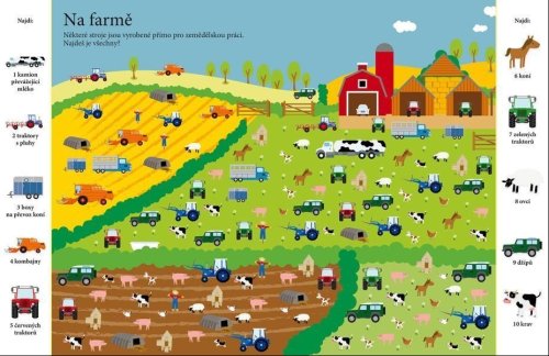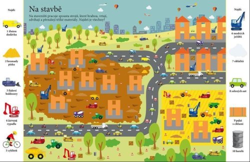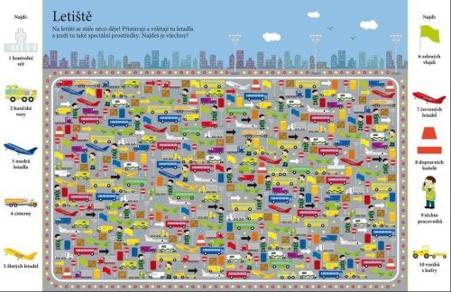 Najdeš jednoho pilota, dva kaskadéry, tři psy a čtyři neuvěřitelné létající bicykly? Dnes je velký letecký den, tak neváhej a pusť se do důkladného prozkoumávání obrázků. V tomto sešitu tě čeká mnoho scenérií a situací s tematikou nejrůznějších vozidel, které skýtají spoustu času zábavného hledání. Schválně, jak bystré máš smysly? Najdeš všechny předměty schované v obrázcích? Ve městě, v kempu, na nádraží, během automobilových závodů... Kdo a co všechno se schovává v těchto dopravních situacích? Objevuj rozmanité výjevy a zabav se hledáním více než tisícovky předmětů, které jsou v knize šikovně ukryty. Kolik z nich se ti podaří najít?