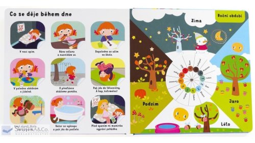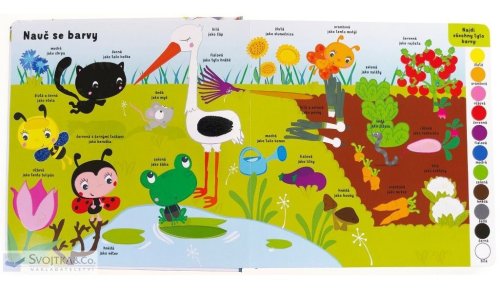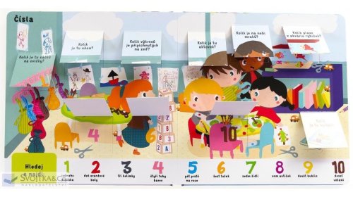 Knížka plná poučení pro malé zvídavé děti objevující svět, který je obklopuje a je plný zábavy. Obsahuje množství rozličných interaktivních prvků. Odklápěcí okénka, stránky složené z rozličných materiálů, vytahovací obrázky, otáčecí kolečka, dotykové prvky… Otevírá se před vámi interaktivní knížka s veselými barevnými obrázky, která je určena těm úplně nejmenším čtenářům, kteří právě poznávají svět kolem sebe. Děti se naučí, co je to čas a jak plyne, jak se mění roční období a jaká jídla je zdravé jíst. Poznají barvy, tvary i protiklady. Prozkoumají dopravní prostředky, písmena i čísla. Díky této knížce děti nejen poznají svět, ale přiučí se i o správném chování a zdravém způsobu života. Aktivity na stránkách je budou bavit – podněcují totiž k samostatnosti a (s drobnou pomocí rodičů) k poznání světa ve všech jeho důležitých aspektech.