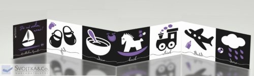 Tuto okouzlující knížečku - harmoniku s obrázky si s vámi bude vaše miminko prohlížet moc rádo. Seznámí se díky ní s prvními obrázky. Batole lépe rozlišuje kontrasty, proto má tato obrázková knížka jednoduchou kontrastní barevnou grafiku, uzpůsobené citlivému dětskému zraku. Děťátko se s tímto leporelem bude učit poznávat věci kolem sebe. Leporelo je vyrobeno z pevného materiálu ve stylu harmoniky - jde tedy jak pohodlně prohlížet, tak postavit kolem miminka, ať jej zkoumá samo. Obrázky předmětů, se kterými se vaše miminko setkává ve svém okolí, si budete spolu rádi prohlížet stále dokola. Ukažte svému děťátku, jak má otáčet pevné stránky, a rozvíjejte tak u něj jemnou motoriku a koordinaci pohybu prstíků.