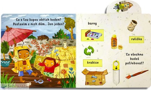 Plastové i skleněné lahve, kartony a papíry. Víš, co se dá recyklovat? Poslouchej veršíky a pohybuj obrázky v tomto leporelu, ať poznáš, co je to recyklace. Plasty, papír, sklo... Co všechno se dá recyklovat? A do jakého kontejneru to patří? Proč bychom neměli při čištění zubů nechávat téct vodu? Toto veršované leporelo naučí děti od jednoho roku hravou formou základy životního stylu šetrného k přírodě. Má pevné stránky s posuvnými a otočnými prvky, a tak si dítě při prohlížení knížky současně procvičí jemnou motoriku. Na jednotlivých stránkách může posouvat, tahat, otáčet. Objeví nové věci, o kterých si můžete společně popovídat!