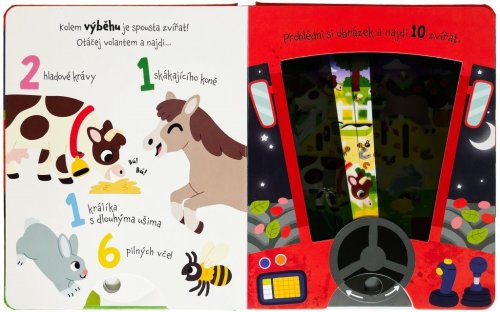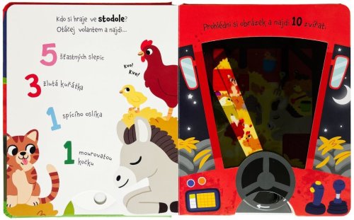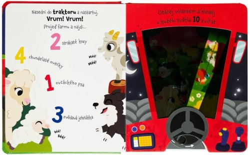 Nauč se počítat do 10 s touto interaktivní knihou s kouzelnou baterkou! Posaď se za volant a projeď se s traktorem po farmě. Otáčej volantem na každé stránce, posviť si na cestu, hledej a počítej zvířata, která v kuželu světla objevíš. Zvládneš je ve tmě všechna najít? Hrajte si, na každé dvojstraně je nová aktivita!