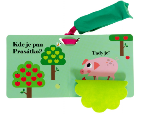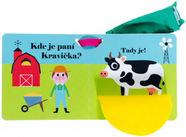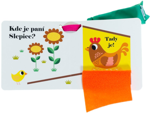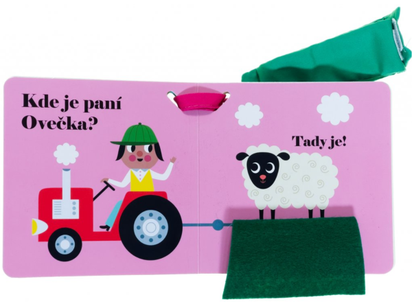 Roztomilá knížka pro nejmenší se schovanými zvířátky z farmy. Dá se připevnit přímo ke kočárku. Knížka vhodná pro nejmenší děti pro jejich první seznamovaní se světem. Rozvíjí jejich zrak, hmat a motorické schopnosti. Děti budou hledat schovaná domácí zvířátka, měkká plstěná okénka umožní dětem zlepšovat poznávání světa hmatem. Na konci knihy na děti vykoukne překvapení. V malém kulatém zrcátku uvidí… Kohopak? No přece sebe! Díky malým rozměrům a připevnění ke kočárku je tato knížečka skvělým parťákem na cesty.