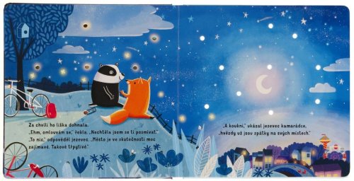 Toto milé společné čtení na dobrou noc vám i vašim dětem představí příběh o kamarádech jezevci a lišce. Liška jednoho večera nabídne jezevci, že mu ukáže město, svůj domov, které se pomalu noří do tmy. Jezevec, zvyklý na les, je velice překvapen nočním městem a nestačí se divit, jak zářivé a rušné umí tak pozdě být. Nechte se s vašimi nejmenšími touto milou a roztomilou knihou o přátelství pomalu ukolébat ke spánku za doprovodu světélek, která na stránkách září jako hvězdy na noční obloze.