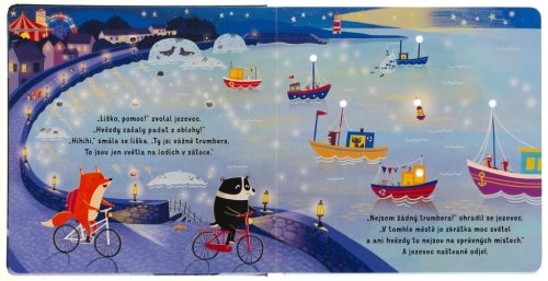 Zachumlejte se do peřin a společně se vydejte na malé noční dobrodružství do města s jezevcem a liškou za doprovodu deseti třpytivých světélek.