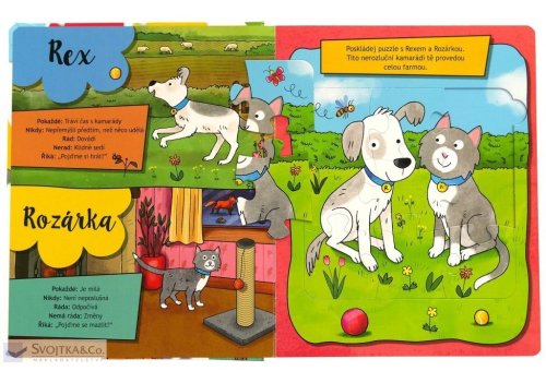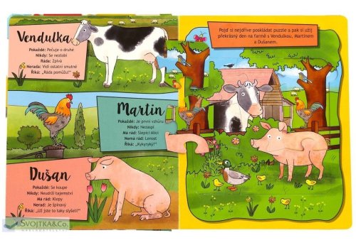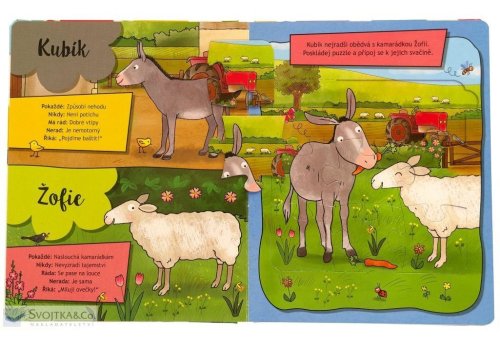 Pojďte se seznámit se všemi kamarády z farmy; poznej, co mají rádi a co neradi, co nejradši dělají či říkají. V této veselé knížce s puzzle na každé straně malí zvědavci poznají zvířátka z farmy a dozvědí se o nich mnoho zajímavých informací. S puzzle je nejen veliká legrace, ale také si procvičí jemnou motoriku a soustředění. Krásně ilustrované leporelo vytvořil známý kreslíř Axel Scheffler, ilustrátor Gruffala.