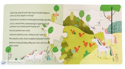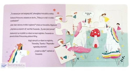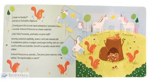 Příběh o jednorožcích Hvězdičce Blýskavé a Duhové Princezně s puzzle. Pomoz Hvězdičce Blýskavé a Duhové Princezně zjistit, komu patří ztracený klíč. Čípak asi je a co se s ním odemyká? Sestav všechna puzzle a hledej odpovědi v nádherně ilustrovaném příběhu! Obal: leporelo s puzzle ISBN: 978-80-256-2767-9 Rozměr složeného puzzle cca 16 x 16 cm