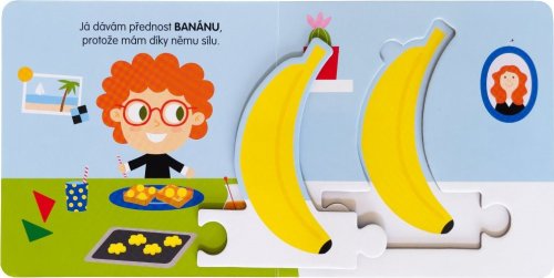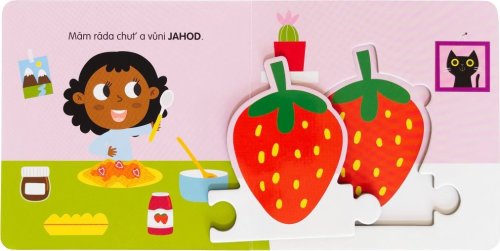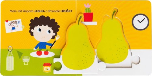 Prohlížej si knížku a bav se skládáním dílků puzzle. Puzzle s ovocem se dají různě spojovat! Které bude stát v řadě jako první?