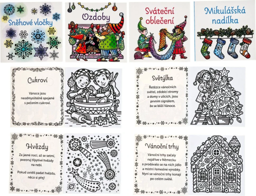 Uvnitř najdete celkem 24 knížek s černobílými obrázky. Bílé části lze velice snadno vybarvit - stačí namočit štětec, který je součástí kalendáře, do vody a barva se jako zázrakem na bílém podkladě objeví. Součástí každé knížky je i karta zabraňující prosáknutí vody. 24 knížek přináší 24 různých adventních a vánočních témat, o kterých si můžete společně vyprávět. Počet stran: 24 knih x 8 Vazba: Brož. Rok vydání: 2024 ISBN: 978-80-256-3612-1