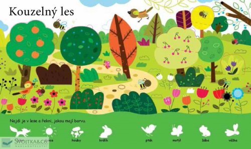Jaké jsou základní barvy? Podívej se pod okénko! Odklop okénko a podívej se, kdo se veze v růžovém vagonu barevného vláčku! Podívej se za stromy jakou barvu mají zvířátka, která se tam schovávají? Najdi schované hračky v obchodě. Kolik jich je? Tato zábavná interaktivní knížka s více než 60 otevíracími okénky obsahuje ještě spoustu dalších zábavných cvičení, která pomáhají dětem naučit se poznávat barvy, pojmenovávat věci, dávat je dohromady a počítat do 5. Děti, které ještě neumějí číst, si o barvách mohou alespoň popovídat.