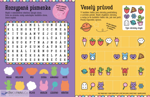 Pojď se seznámit s těmito rozkošnými mazlíčky a užij si s nimi spoustu legrace v této knížce plné aktivit, kde na tebe čeká více než 150 barevných a reliéfních samolepek, které koulí očima! Najdi mezi zvířátky ztracené štěňátko, vyřeš složitou osmisměrku nebo vypočti záludné hvězdné počty. Všichni barevní mazlíčci se již těší, až s nimi prožiješ pořádné dobrodružství a popustíš uzdu své fantazii! Veškeré samolepky můžeš nalepit do obrázků nebo si je můžeš nalepit, kamkoliv budeš chtít.