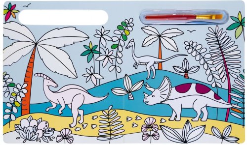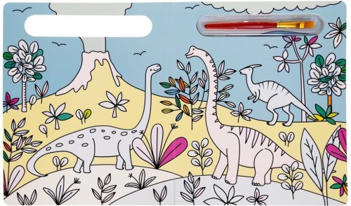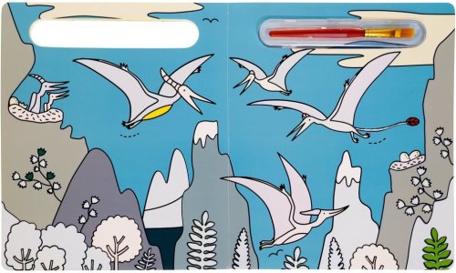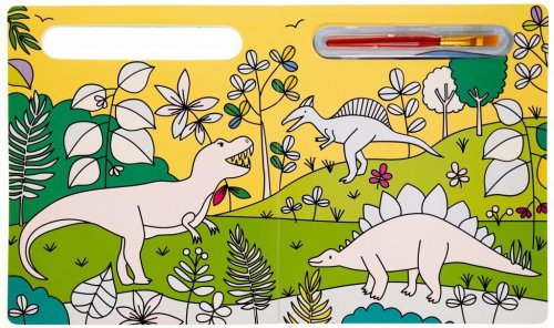 Knížka s pevnými stránkami je plná obrázků dinosaurů, které jsou částečně barevné. Bílé části lze velice snadno vybarvit - stačí namočit štětec, který je součástí knihy, do vody a barva se jako zázrakem na bílém podkladě objeví.