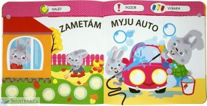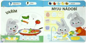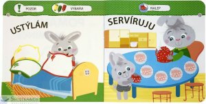V této knížce najdou naši nejmenší malého zajíčka a plno jednoduchých aktivit, které jim pomohou naučit se pomáhat rodičům s domácími pracemi. Nauč se domácím pracem s malým zajíčkem! Víš, jak nejlépe pomoci mamince, aby neměla tolik starostí? Umíš si ustlat postýlku, připravit si oblečení nebo třeba nakrmit pejska? Podívej, jak je to snadné. Mamince a tatínkovi tím moc pomůžeš a budeš už velký kluk nebo velká holka. Vše musíš ještě správně vybarvit, spojit a nalepit samolepky na ta správná místa. V této knížce se naši nejmenší naučí pomáhat doma díky jednoduchým aktivitám nejen se samolepkami. Tak honem, pusť se společně s malým zajíčkem do učení!
