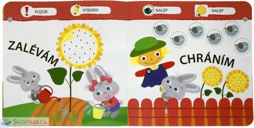 V této knížce najdou naši nejmenší malého zajíčka a plno jednoduchých aktivit, které jim pomohou poznat, jak to chodí na zahradě při pěstování ovoce a zeleniny. Nauč se s malým zajíčkem, jak se starat o zahradu! Jak se sází rostliny? Kdo ohlídá úrodu? Máš rád či ráda vlastní vypěstovanou zeleninu? Je moc dobrá. Staň se malým zahradníkem! Vše musíš ještě správně vybarvit, spojit a nalepit samolepky na ta správná místa. V této knížce se naši nejmenší naučí, jak to chodí na zahradě a na záhonu, díky jednoduchým aktivitám nejen se samolepkami. Tak honem, pusť se společně s malým zajíčkem do učení!
