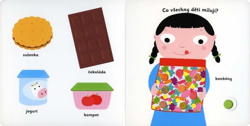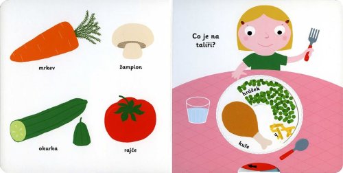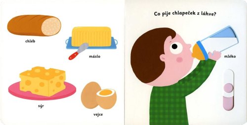 Jak vypadá jablíčko, když se rozkrojí? Co bude dnes k obědu? A co se maže na chleba ke snídani? Je zdravější hrášek, nebo hranolky? Které ovoce je oranžové? Rozdělí se mlsná holčička o bonbony? Stačí jen vložit prstík do správného otvoru a lehce vysunout, zatáhnout nebo otočit ve směru šipky a hned bude váš malý objevitel či objevitelka znát odpovědi na všechny tyto otázky o jídle. Leporelo je určeno pro nejmenší děti od jednoho roku a má pevné stránky s posuvnými a otočnými prvky, a tak si naši nejmenší mohou při prohlížení a rozeznávání jídel a pokrmů procvičit i jemnou motoriku. Knížka s prvky Montessori. České vydání publikace nakladatelství Nathan. Počet stran: 12 Vazba: Leporelo Rok vydání: 2017 ISBN: 978-80-256-1884-4 Ilustrační video