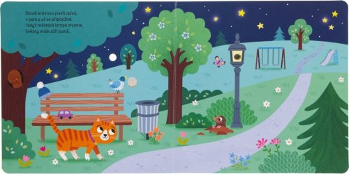 Na noční obloze vyšly první hvězdy a některá zvířátka se právě probouzejí a vydávávají se za dobrodružstvím. Následuj kočku městem s touto veršovanou zvukovou knihou s blikajícími světýlky, která vám a vašim nejmenším ukáže, co dělají zvířátka, která v noci nespí. Společně si předčítejte milé verše, posviťte si na zvířátka a nechte se pomalu ukolébat ke spánku.