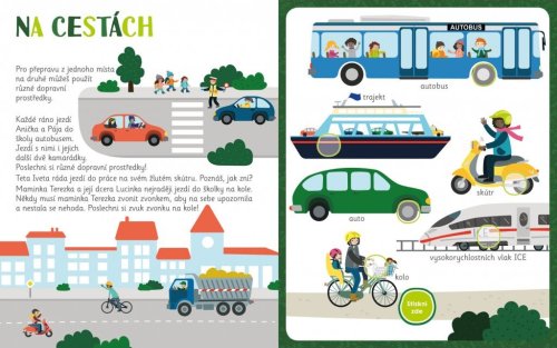 Poznej v této zvukové knize plné krásných ilustrací na více než 40 zvuků různých tematicky řazených dopravních prostředků a dalších strojů.