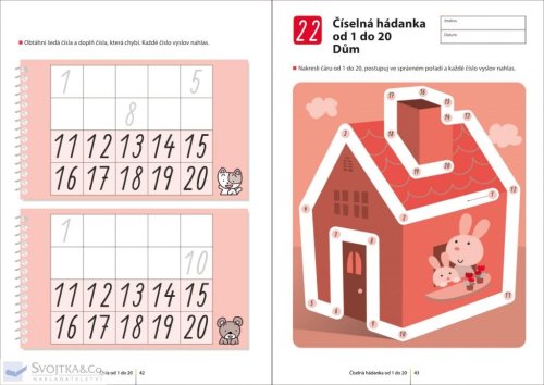 Pokud již vaše dítě umí přečíst čísla větší než 10, tento pracovní sešit mu pomůže naučit se čísla vyjmenovat ve správném pořadí a poznat je až do 30.